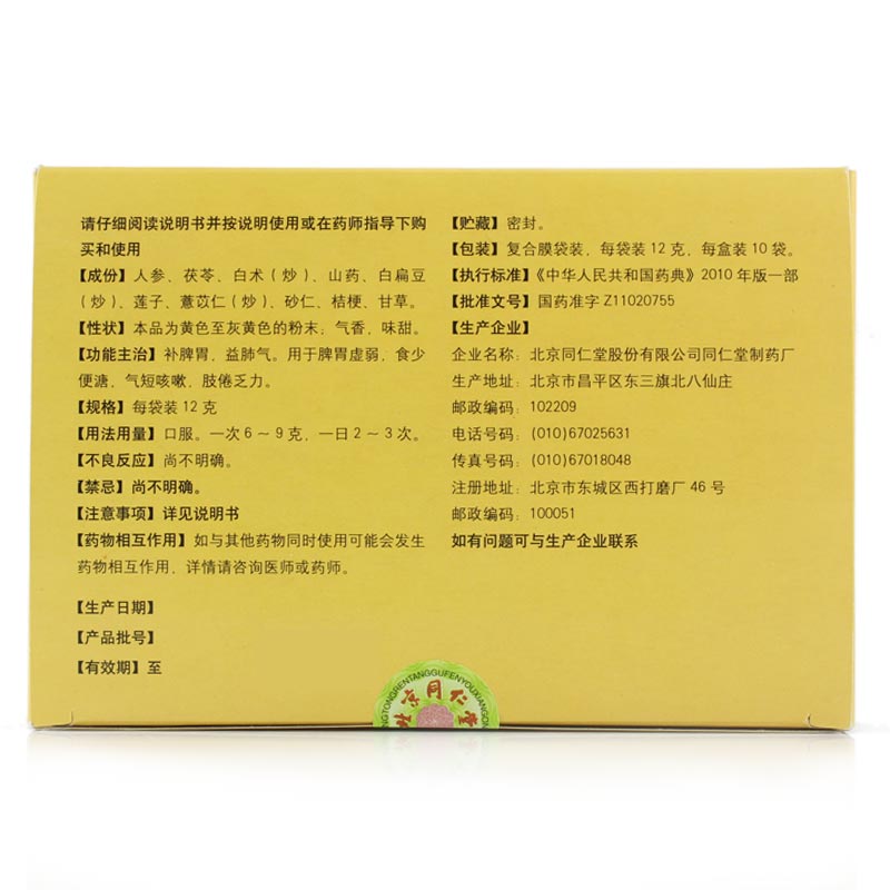 商品名: 同仁堂 参苓白术散
