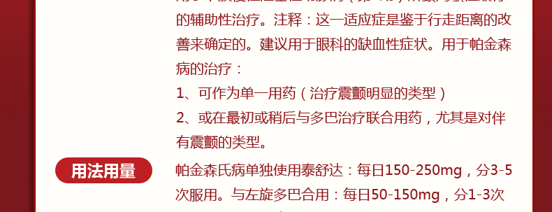 请仔细阅读(泰舒达 吡贝地尔缓释片 50mg*30片)的作用说明,并在药师指导下购买和使用。