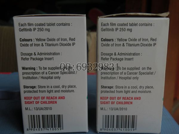 再说说假货来源:最以假乱真的莫过于所谓的“杭州版”,市面上尤其是大城市如北京,最多的就是这个版本。由于仿真度极高而且大多数含有吉非替尼成分,能产生治疗效果,极受欢迎,占到所有假货的70-80%左右。可能是由于最早生产于杭州,所以叫杭州版。最最可怕的是,有些网站竟然用这种高仿版作为真品卖,同时旁边还有所谓的“鉴别方法”,而这些鉴别方法都是引大家到误区里面的。这种欺骗性极高,90%的人都会上当!!下面我会谈到可行的鉴别方法,而不是误导的骗局。