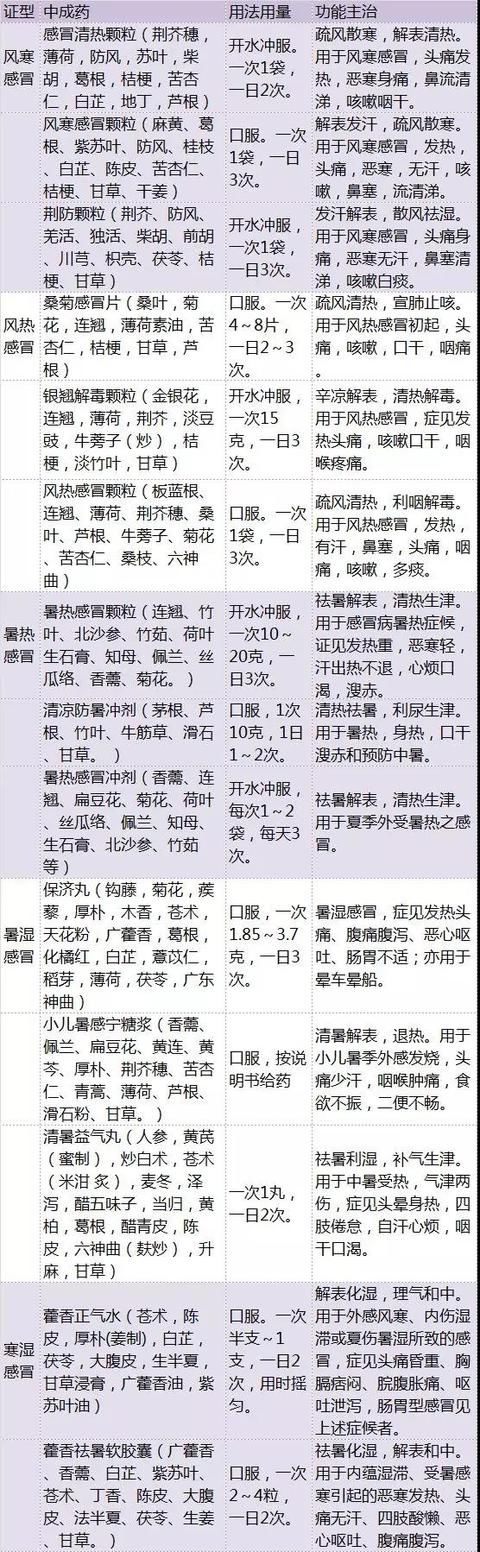 夏季感冒的5种分型和常见中成药一览表