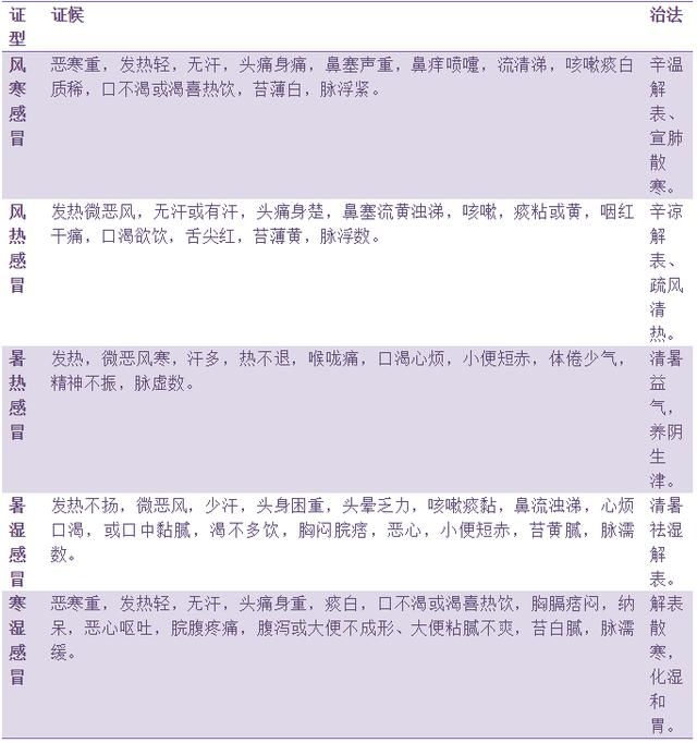 夏季感冒常见证型