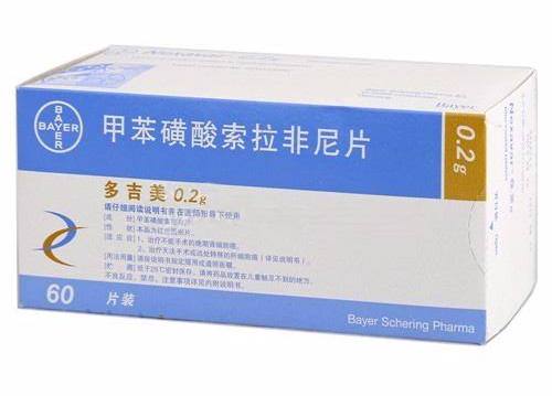 尚缺乏充分的中国人群临床研究数据,因此须在有本品使用经验的医生指导下使用。皮肤毒性:手足皮肤反应和皮疹是服用索拉非尼最常见的不良反应。皮疹和手足皮肤反应通常多为NCICTC(国际肿瘤通用毒性标准)1到2级,且多于开始服用索拉非尼后的6周内出现。对皮肤毒性反应的处理包括局部用药以减轻症状,暂时性停药或/和对索拉非尼进行剂量调整。对于皮肤毒性严重且反应持久的患者可能需要永久停用索拉非尼。严重者应永久停药。高血压:服用索拉非尼的患者高血压的发病率会增加。药物相关的高血压多为轻到中度,多在开始服药后的早期阶段就出现,用常规的降压药物即可控制。应常规监控血压,如有需要则按照标准治疗方案进行治疗。对应用降压药物后仍严重或持续的高血压或出现高血压危象的患者需考虑永久停用索拉非尼。出血:服用索拉非尼治疗后可能增加出血的机会。严重出血病不常见。一旦出现需治疗,建议考虑永久停用索拉非尼。华法林:部分同时服用索拉非尼和华法林治疗的患者偶发出血或凝血时间国际标准化比值(INR)升高。对合用华法林的患者应常规检测凝血酶原时间、INR值并注意临床出血迹象。伤口愈合并发症:服用索拉非尼对伤口愈合的影响未进行专门的研究。需要做大手术的患者建议暂停索拉非尼,手术后患者何时再应用索拉非尼的临床经验有限,因此决定患者再次服用前应先从临床考虑,确保伤口愈合。心肌缺血和/或心肌梗死:在试验11213中,治疗相关的心肌缺血/心肌梗死在索拉非尼组的发生率(2.9%)高于安慰剂组(0.4%)。不稳定的冠心病患者和近期的心肌梗死患者没有入组该试验。对于发生心肌缺血和/或心肌梗死的患者应该考虑暂时或长期终止索拉非尼的治疗。胃肠道穿孔:胃肠道穿孔较为少见。在使用索拉非尼的患者中报告出现胃肠道穿孔的不足1%。在一些病例中,胃肠道穿孔未伴随显在腹腔内肿瘤出现,应停止本品治疗(见[不良反应])。肝损:没有肝损害ChildPughC级的患者的研究资料。由于索拉非尼主要是经肝脏消除,其在肝功能严重受损的患者中暴露量会升高。药物-药物相互作用: UGT1A1途径:建议索拉非尼和通过UGT1A1途径代谢的药物(如伊立替康)联用时应予注意(见[药物相互作用])。多烯紫杉醇:多烯紫杉醇(75mg/m2或100mg/m2)与本品联用(0.2g或0.4g每日两次给药),本品和多烯紫杉醇之间有三天的用药间隔,多烯紫杉醇的AUC增加36~80%。本品与多烯紫杉醇联用时,建议保持谨慎(见[药物相互作用])。对驾驶和机器操作的影响:目前尚无索拉非尼对驾驶和机器操作的影响的研究。