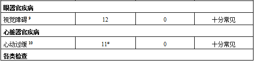心动过缓:本品治疗可发生症状性心动过缓(参见【不良反应】)。应根据临床指征监测心率和血压。如果发生无症状心动过缓,则无需调整剂量(参见【用法用量】)。如果患者发生症状性心动过缓或危及生命的事件,应对合并用药中已知引发心动过缓的药物以及降压药进行评估,并按表2所述调整本品治疗的剂量(参见【用法用量】和【药物相互作用】)。