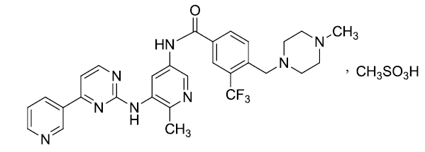 化学名称:N-[6-甲基-5-[[4-(吡啶-3-基)嘧啶-2-基]氨基]吡啶-3-基]-4-[(4-甲基哌嗪-1-基)甲基]-3-(三氟甲基)苯甲酰胺甲磺酸盐