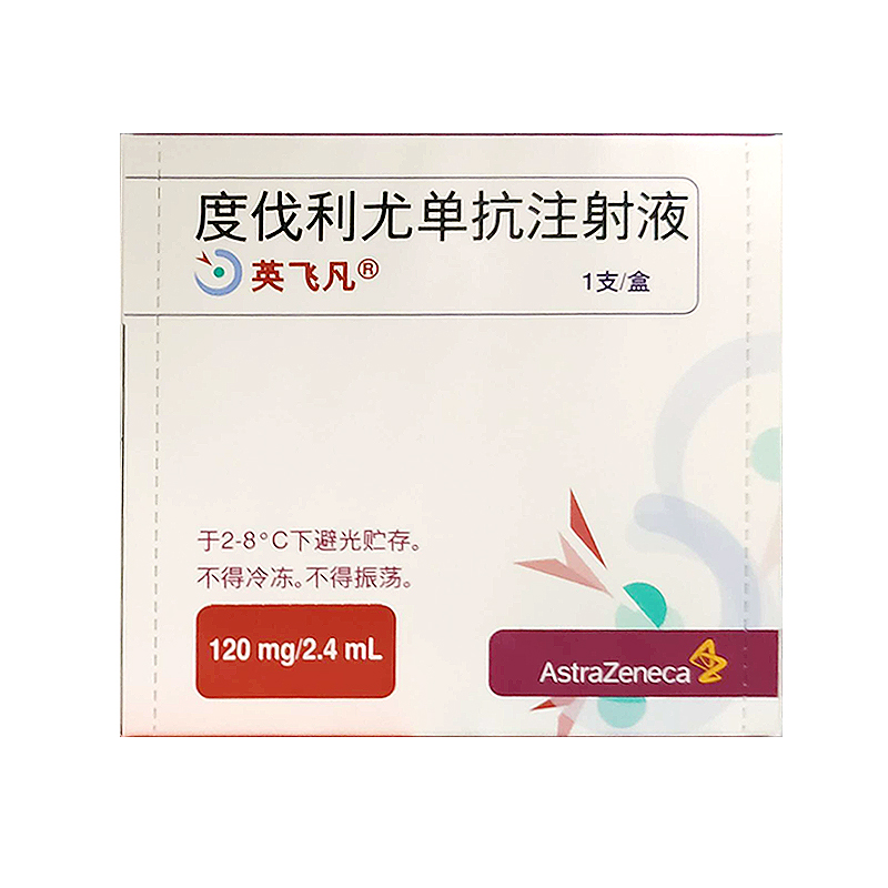 活性成份:度伐利尤单抗。度伐利尤单抗是采用中国仓鼠卵巢细胞(CHO)表达制备的抗程序性死亡受体-配体1(PD-L1)人源化单克隆抗体(IgG1k型)。辅料:L组氨酸、L-组氨酸盐酸盐一水合物、a,a-海藻糖二水合物、聚山梨酯80和注射用水