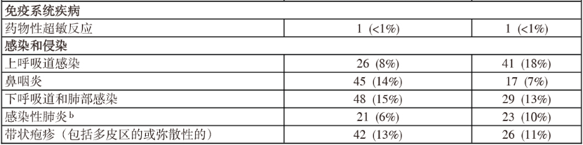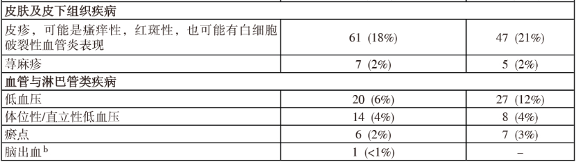 虽然静脉注射给药与皮下给药治疗组的总体安全性数据类似,下表重点列出了在两个治疗组中总发生率相差超过10%的药物不良反应。